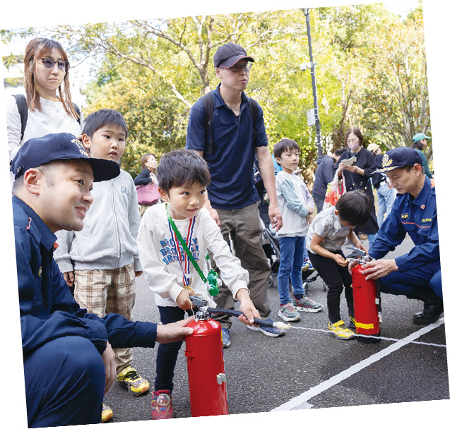 健康や日常生活に関わるさまざまな相談ができるブースや、防災や乗り物の体験コーナーがあります。消防士さんになって写真も撮れます。