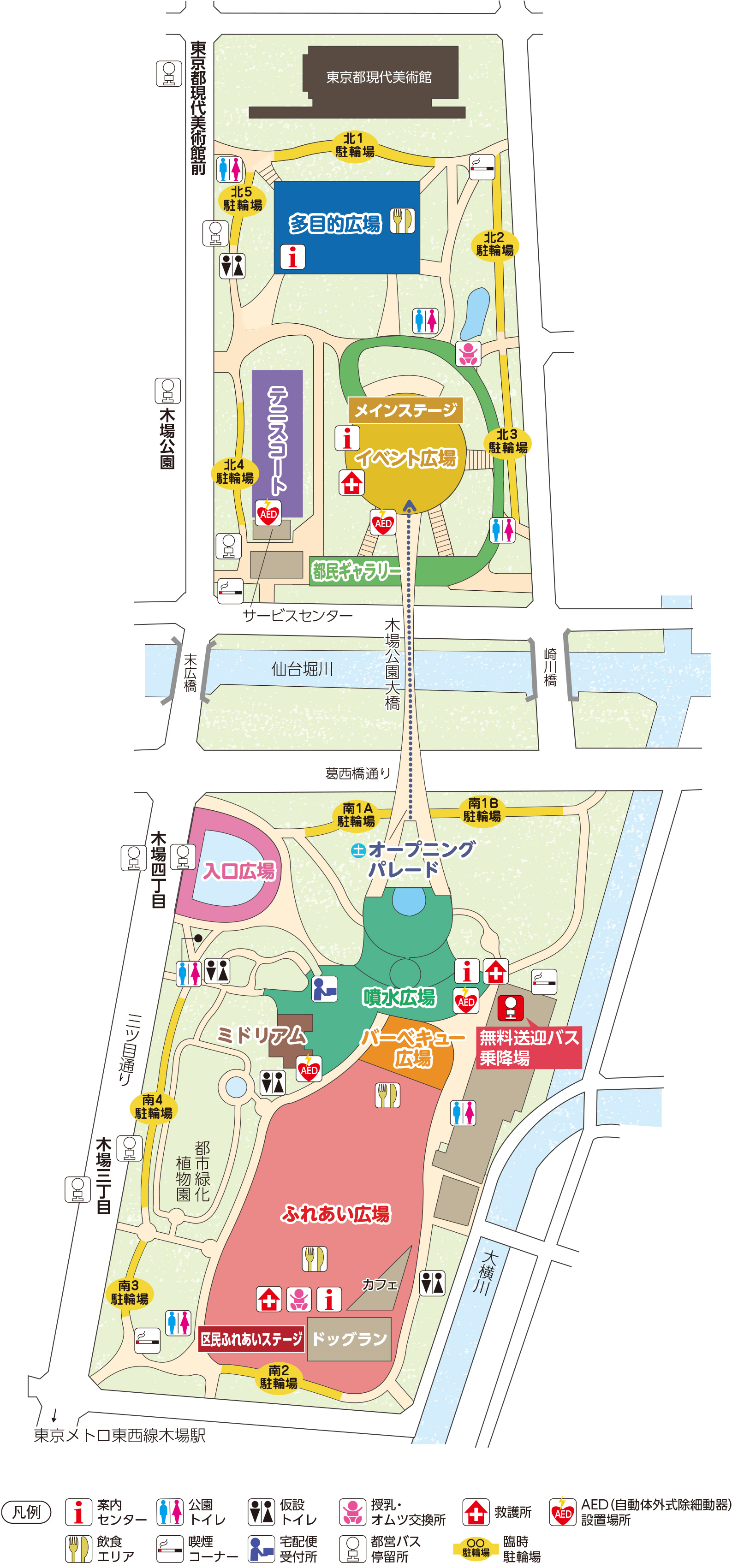 - 11時10分 オープニングパレード 木場公園大橋南詰⇒大橋⇒イベント広場