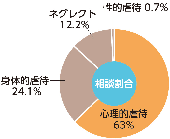 子ども家庭支援センターに寄せられる虐待に関する相談の63%が、心理的虐待についての悩みです