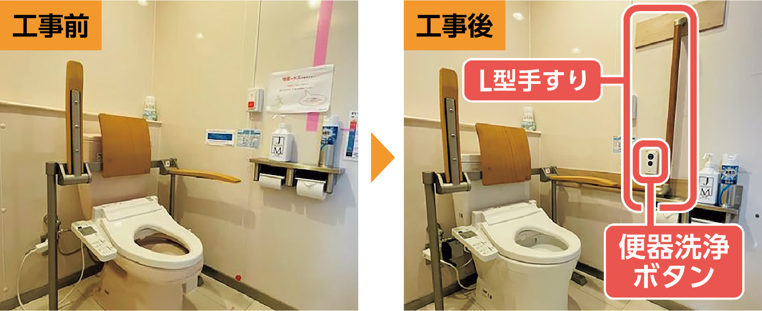 [対象工事]出入口の改修、スロープや手すりの設置、トイレの洋式化などの建築物の改修工事(原則東京都福祉のまちづくり条例の基準に則した工事)