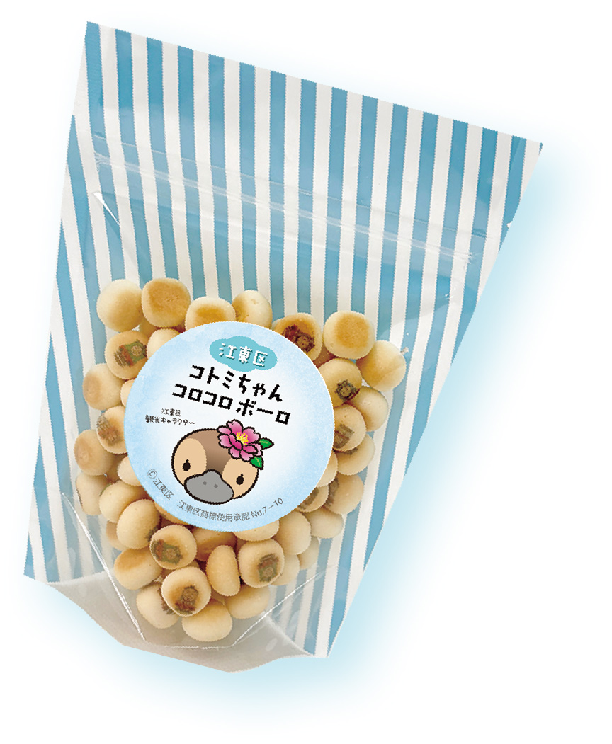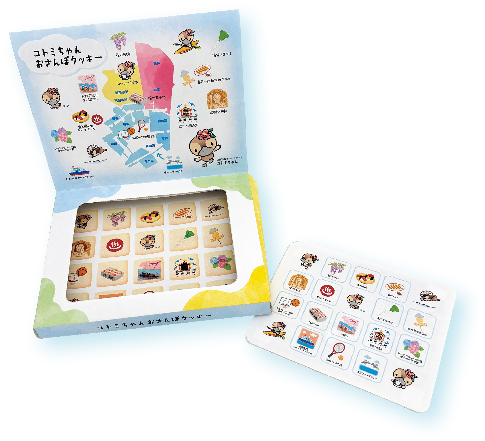 江東区観光キャラクター コトミちゃんと江東区の魅力をイラストにしたクッキーと、コトミちゃんが描かれたボーロを新発売!江東区観光協会の出展するイベントでも販売します。ぜひお買い求めください。