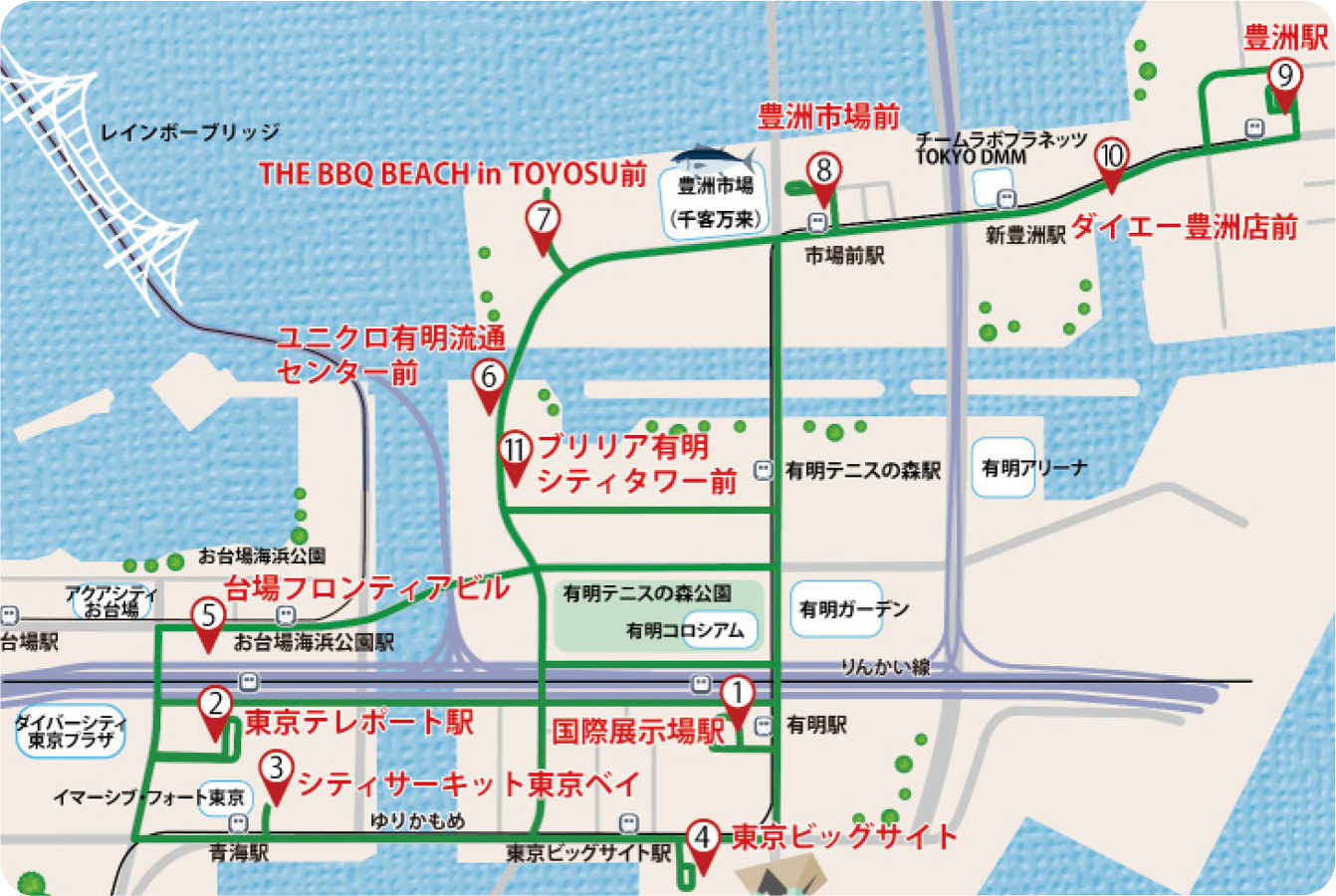 | 新木場若洲線 | 東京へリポート前 | 9時30分~11時45分 |
