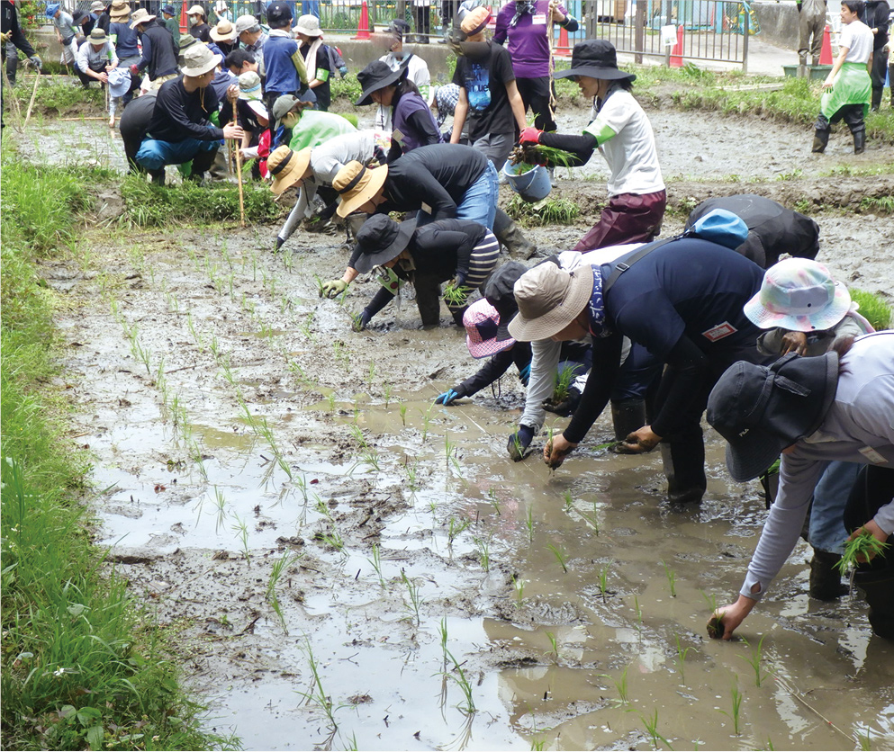 稲作を通じて自然や文化・食育を学ぶため、横十間川親水公園内の田んぼで、年間を通して「田んぼの学校」を開催しています。