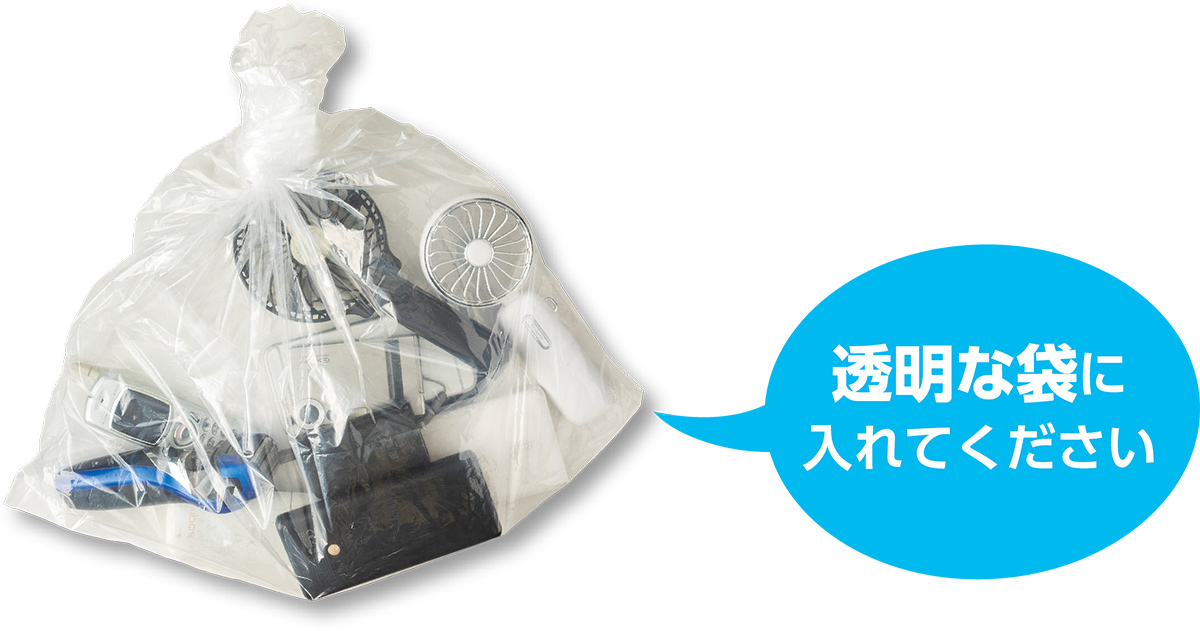 (注釈)小型家電から電池を取り外せない場合はそのまま透明な袋に入れてください