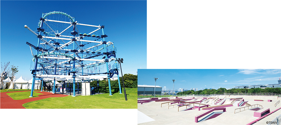 有明にあるアーバンスポーツ施設と、フードモールなどの店舗を有する複合型施設です。スケートボード、ボルダリング、3x3バスケットボール、アスレチック、ランニングスタジアムなどさまざまなスポーツを気軽に楽しめます。