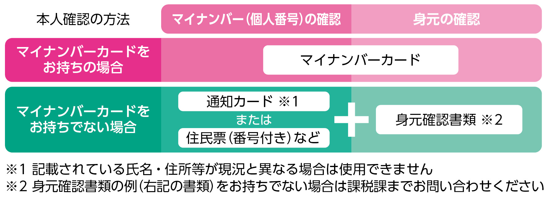 (注釈)郵送で申告書を提出する場合は、マイナンバーカードの表面および裏面の写し、または番号確認書類および身元確認書類の写しを添付してください