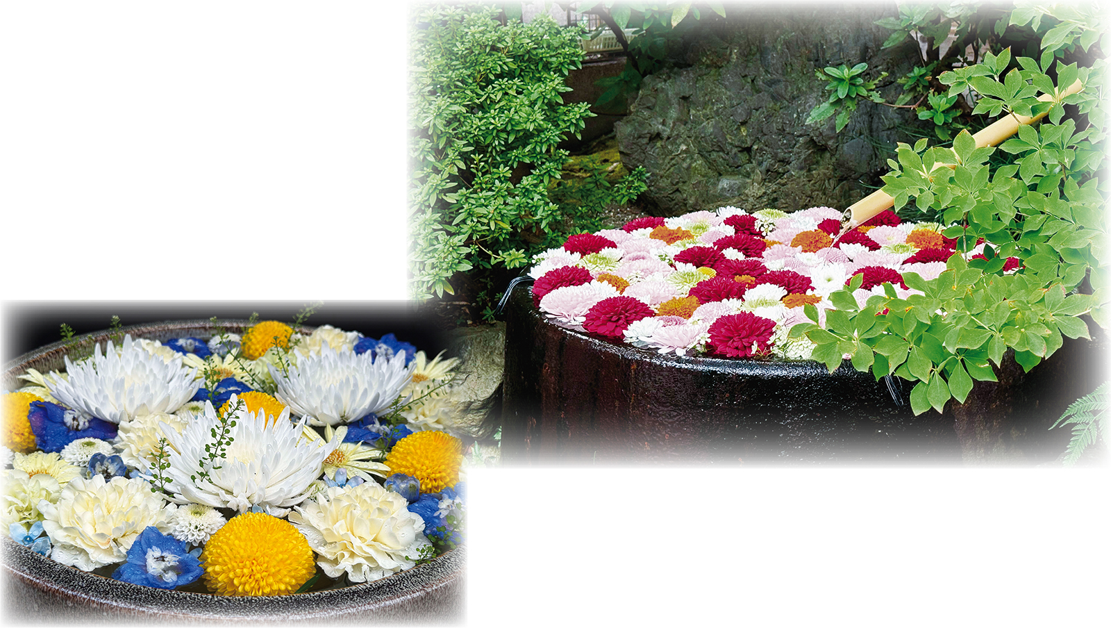 門前仲町の1社3寺と周辺の商店や飲食店が一体となり、社寺や店舗ごとに異なる花を浮かべ歴史ある街並みを鮮やかに彩ります。春に向け段々と暖かくなる時期に、お気に入りの花手水を探しに出かけてみませんか。