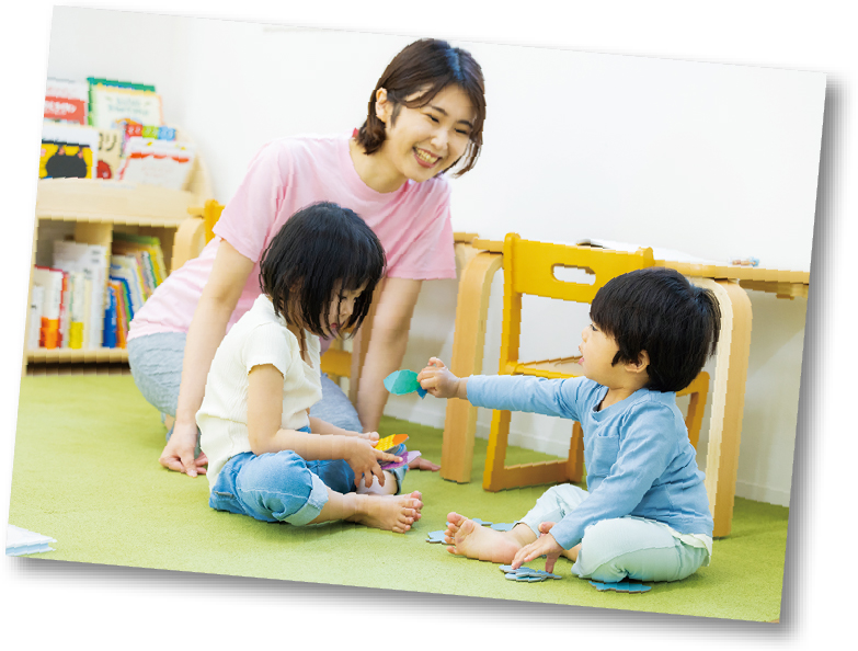 こども誰でも通園制度は保護者の就労状況に関わらず、お子さんを月一定時間保育施設に預けることができる制度です。保育の専門職がいる環境でさまざまな経験ができ、同世代のこどもと関わる機会を得ることができます。