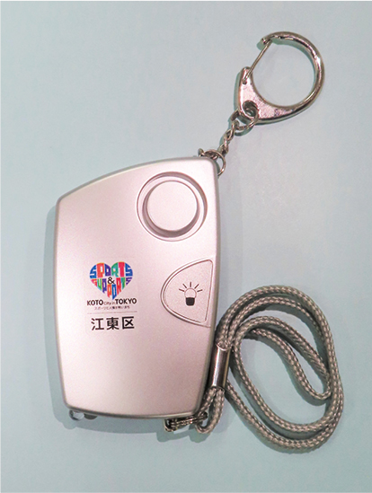 区では、登下校時の児童を犯罪から守るために「防犯ブザー」を無料配付しています。