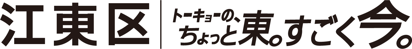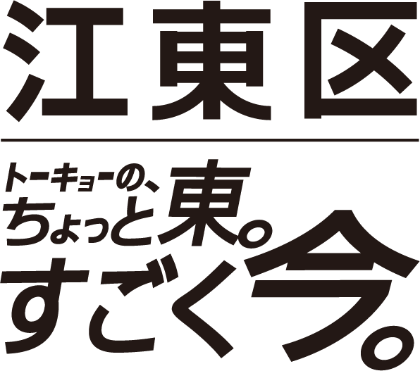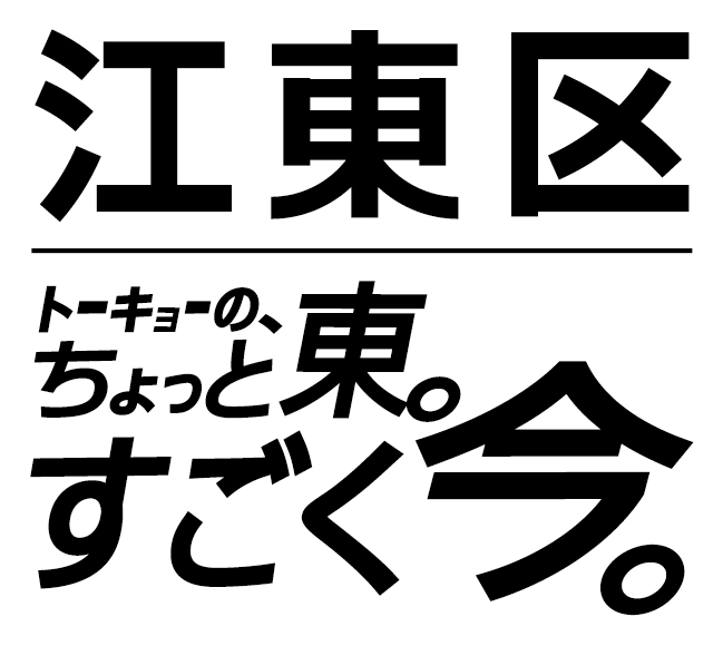 江東区の魅力をより多くの方に伝えるためのプロモーションメッセージ「トーキョーの、ちょっと東。すごく今。」のデザインデータを掲載しています。