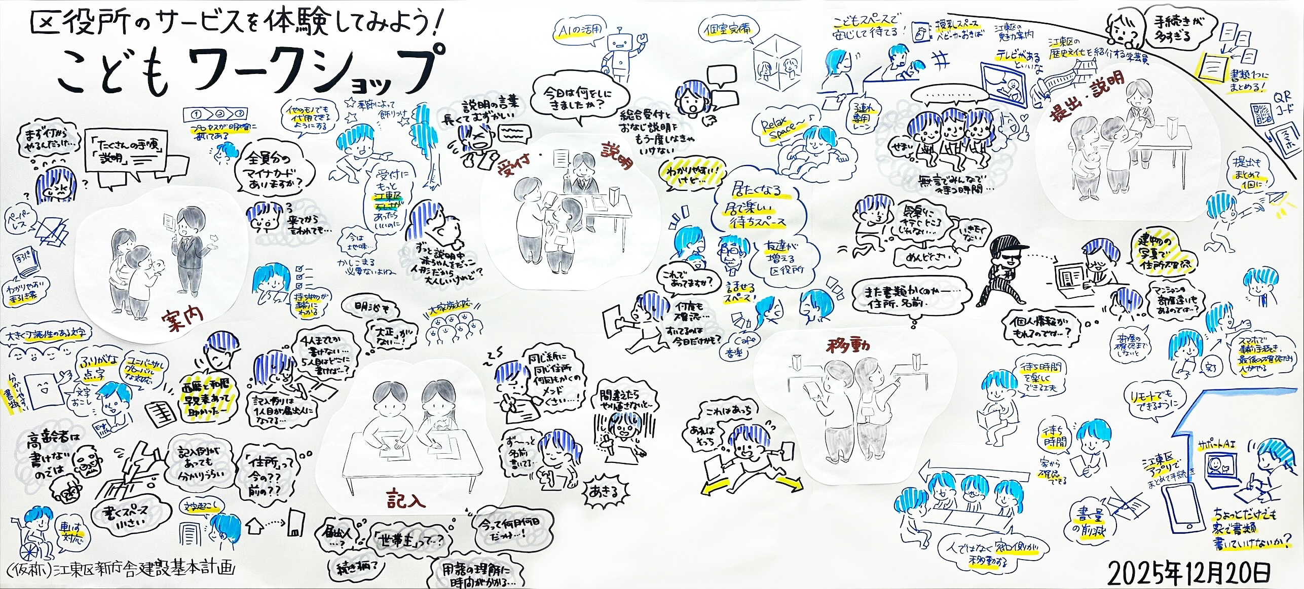 (注釈)こどもワークショップのグラフィックレコーディングにある「建物の写真で住所確認」について、実際の運用では、建物の外観写真を用いた確認は行っておりません。
