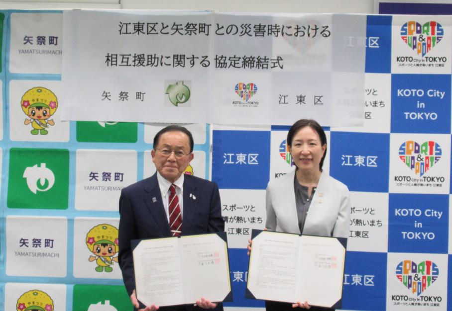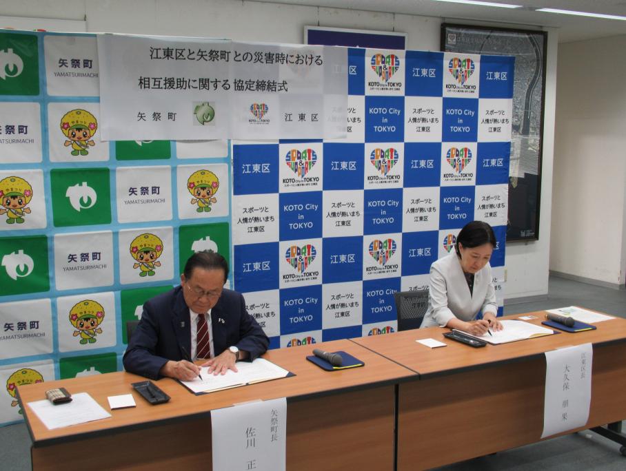 福島県矢祭町と、「江東区と矢祭町との災害時等における相互援助に関する協定」を締結しました。