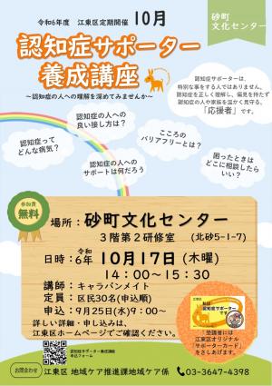 認知症について正しく理解し、偏見を持たず、認知症の人や家族に対して温かい目で見守る認知症サポーターを養成する講座です。
