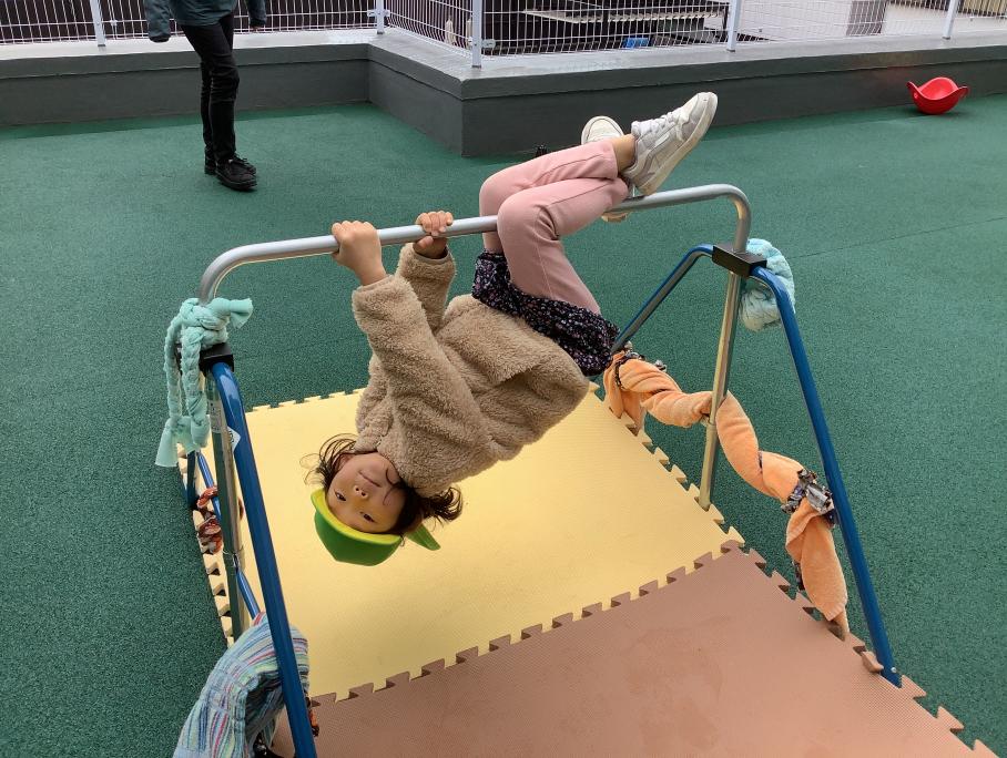 鉄棒のぶら下がりから始め、今では『ぶたのまるやき』ができるようになりました。