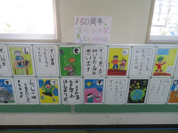 ▲3年生が作った「深川小かるた」 |