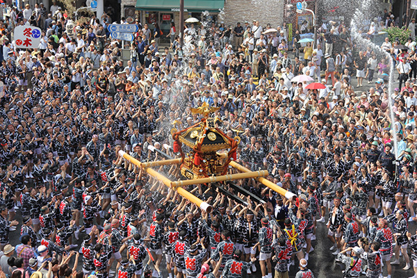 1627(寛永4)年、当時永代島と呼ばれていた現在地に御神託により創建。周辺の砂州一帯を埋め立てて得た敷地は6万508坪に及びます。「深川の八幡様」と親しまれ、今も昔も変わらぬ信仰を集めています。富岡八幡宮の例大祭は江戸三大祭の一つに数えられ、御輿を担いで町を練り歩くさまは当時から話題を呼びました。あまりに人が多く訪れたことにより、1807(文化4)年には永代橋が落橋する事故まで起こっています。